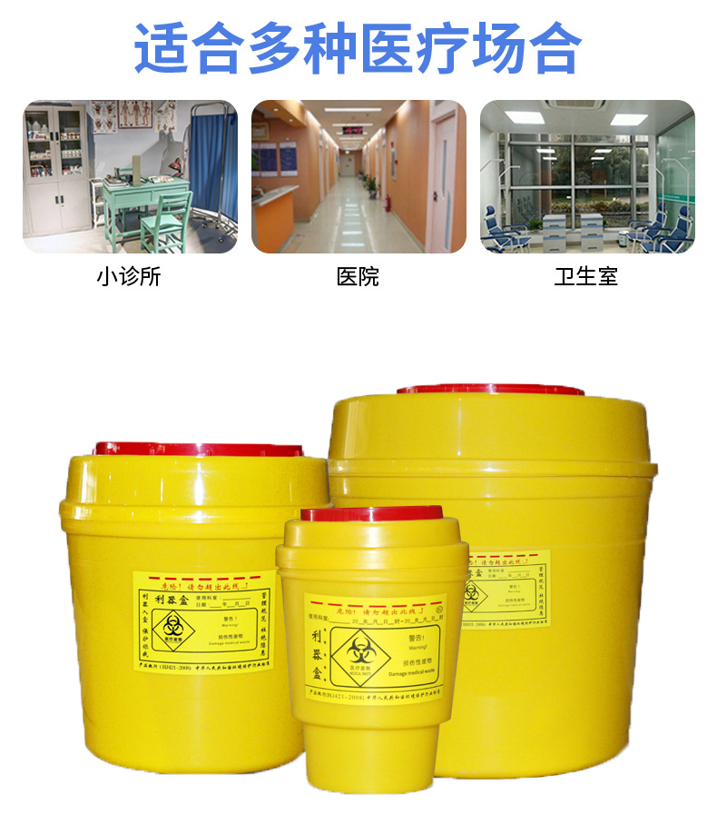 用于各科室日常收集医疗废物(注射器,输液器等一次性使用物品的针头、各类刀片、头皮针、缝合针、安瓿、小玻璃等其它规定放入利器盒的损伤性废物)。