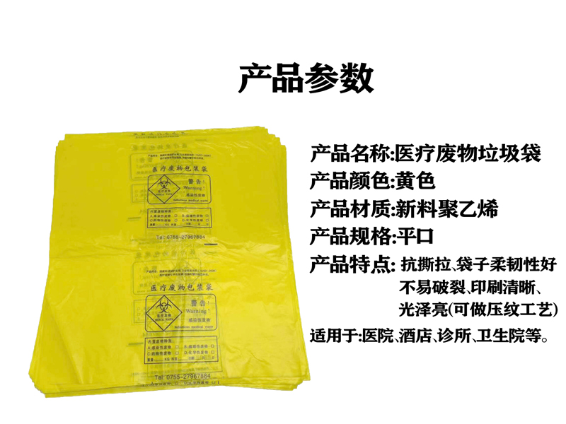 用于盛装除损伤性废物之外的医疗废物的初级包装袋,取代传统的普通塑料包装袋,国家规定必须规范使用医疗废物包装袋。