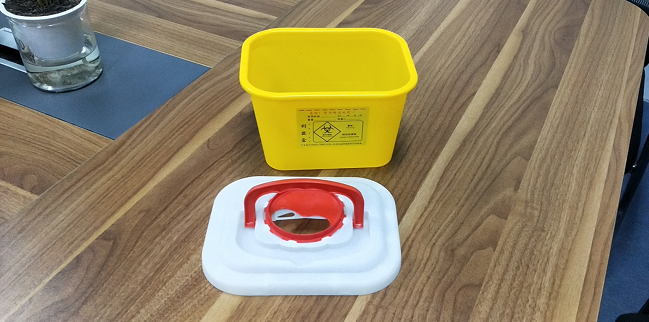 型号:BLY-A016-06 规格:20*16*12cm(3L) 类型:旋转盖,带提手 包装:80个/件 适用范围:医疗机构各科室。 利器盒的作用: 用于各科室日常收集医疗废物(注射器,输液器等一次性使用物品的针头、各类刀片、头皮针、缝合针、安瓿、小玻璃等其它规定放入利器盒的损伤性废物)。 利器盒的特点: 1.利器盒整体为硬质材料制成,封闭且防刺穿,以保证在正常情况下,利器盒内盛装物不撒漏,并且利器盒一旦被封口,在不破坏的情况下无法被再次打开。 2.采用高温热处置技术处置损伤性废物时,利器盒不应使用聚氯乙烯材料。 3.利器盒整体颜色为淡黄,颜色符合 GB/T 3181 中 Y06 的要求。利器盒侧面明显处印警示标志,警告语为“警告!损伤性废物”。 4.满盛装量的利器盒从 1.2m 高处自由跌落至水泥地面,连续 3 次,不会出现破裂、被刺穿等情况。