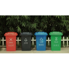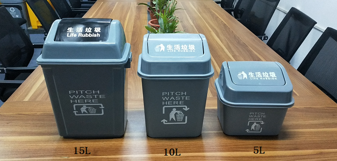 6.生活垃圾桶整体为灰。桶体侧面或桶身明显处印生活垃圾标识。