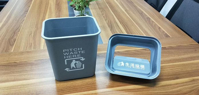 7. 垃圾桶整体装配密闭,桶体与桶盖能牢固扣紧,扣紧后不分离。
