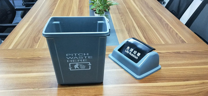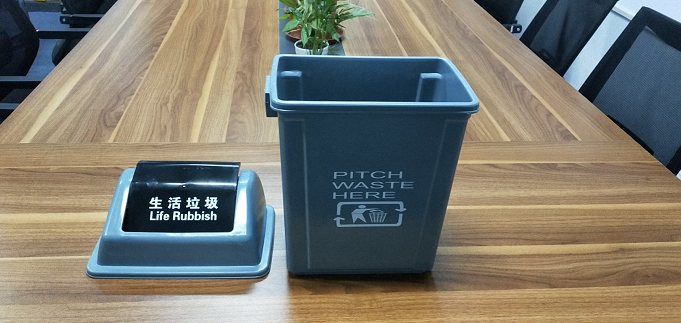 6.生活垃圾桶整体为灰。桶体侧面或桶身明显处印生活垃圾标识。