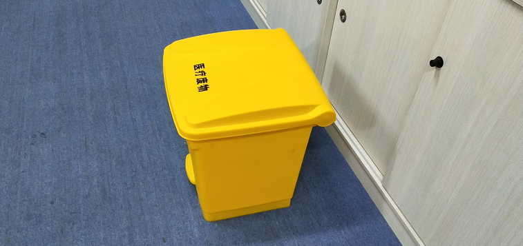 7.医疗垃圾桶整体为淡黄,颜色符合 GB/T 3181 中 Y06 的要求。桶体侧面或桶身明显处印医疗废物警