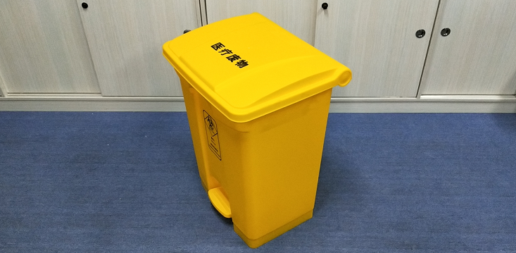 7.医疗垃圾桶整体为淡黄,颜色符合 GB/T 3181 中 Y06 的要求。桶体侧面或桶身明显处印医疗废物警