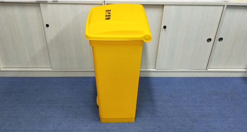 7.医疗垃圾桶整体为淡黄,颜色符合 GB/T 3181 中 Y06 的要求。桶体侧面或桶身明显处印医疗废物警