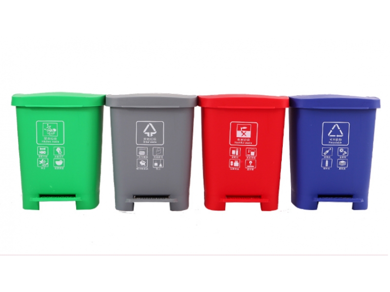 7.颜色:有害垃圾桶红色、厨余垃圾桶绿色、可回收垃圾桶蓝色、其他垃圾桶灰色,桶体侧面或桶身明显处印分类垃圾标识。